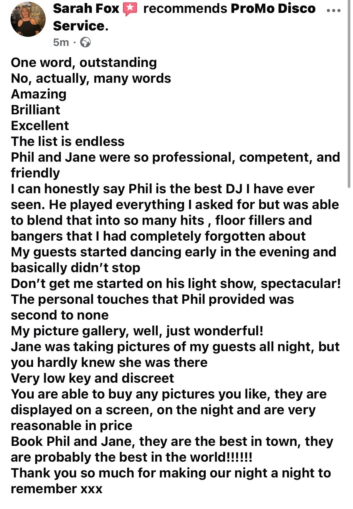 Taking all this into account we feel that ProMo Disco Services represents real value for money. We can guarantee you won’t regret choosing us to provide the perfect entertainment for your event.