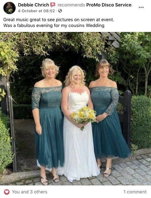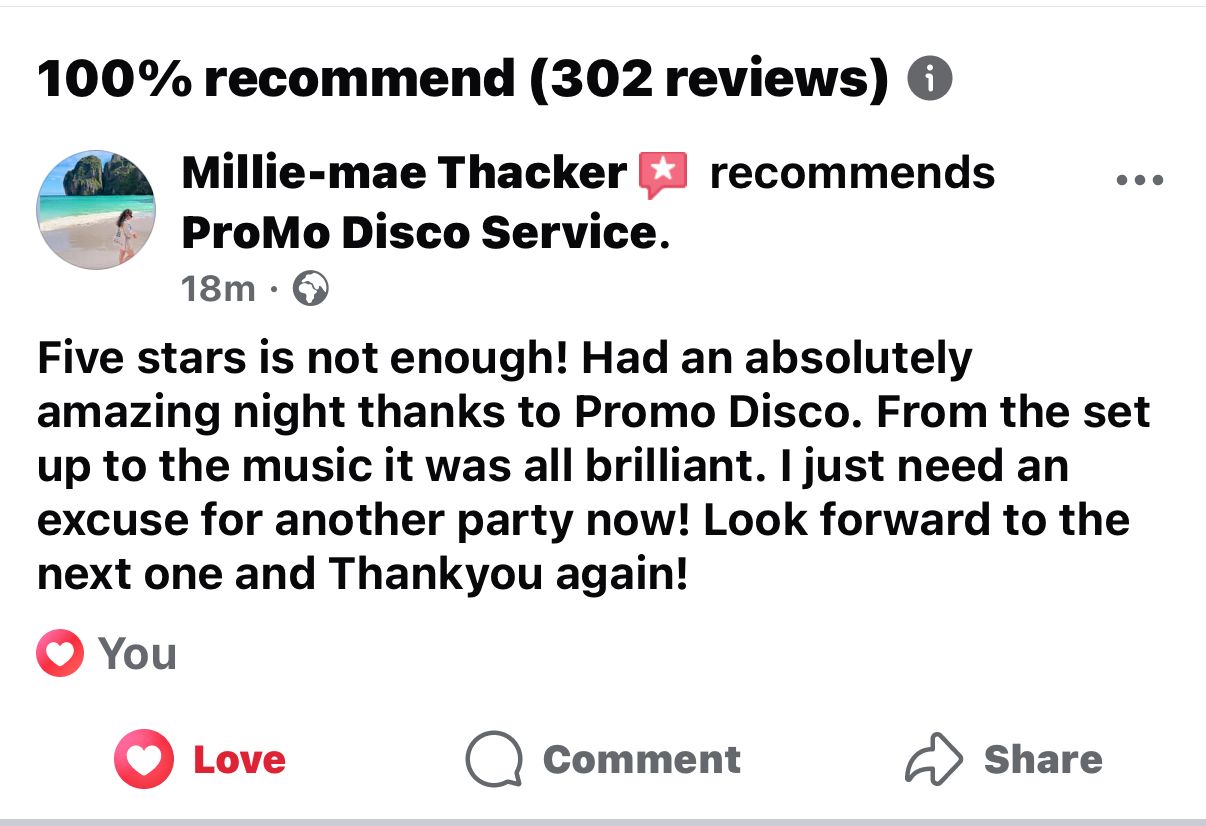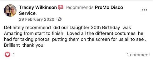 Quotations for mobile discos can vary considerably as can the packages and services that they provide. Unfortunately there are a lot of people who see running a mobile disco as an easy way to have a bit of fun and earn a bit of money. Cheap prices normally indicate that they haven’t got the experience and k nowledge in the services they provide to charge a realistic price. The costs involved in organizing your wedding reception (or any other sort of event function or party) will always be considerable. It’s worth taking into account when budgeting for your event, what proportion of it you should allocate to the entertainment. Your DJ will play one of the biggest parts in ensuring that your event is a pleasurable and memorable experience ( please check out our feedback, comments and review's from past parties on our facebook page ) www.facebook.com/promodiscoservice